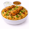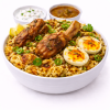 Aromatic basmati rice and tender chicken dum biryani served with Chicken 65 and boiled egg.