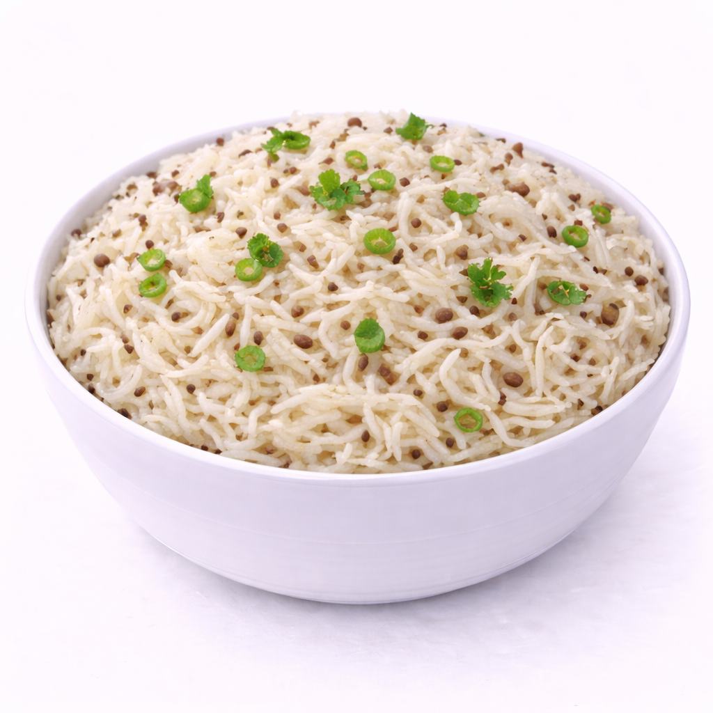 Fragrant rice cooked with cumin seeds, salt, and white pepper for a simple, aromatic dish.