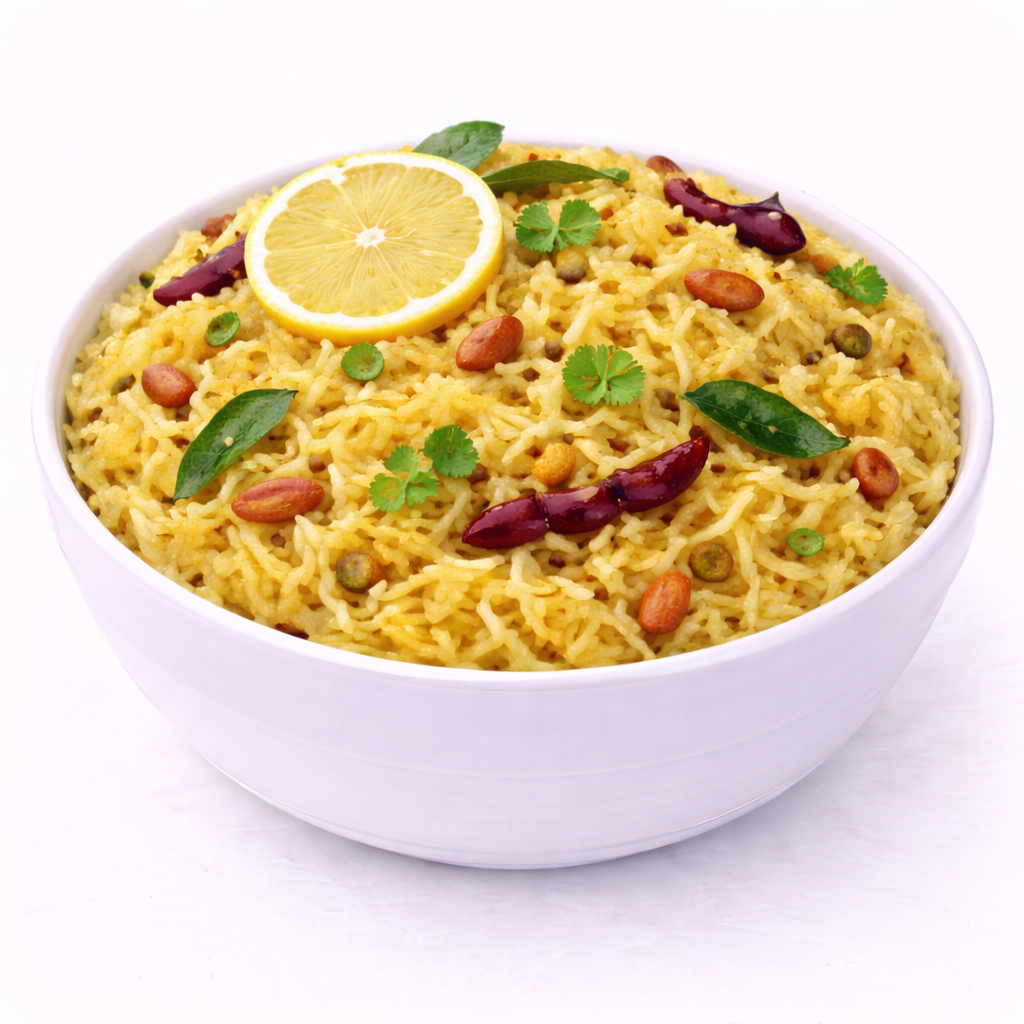 Bright, tangy lemon rice tossed with spices and nuts for a fresh, zesty comfort dish.