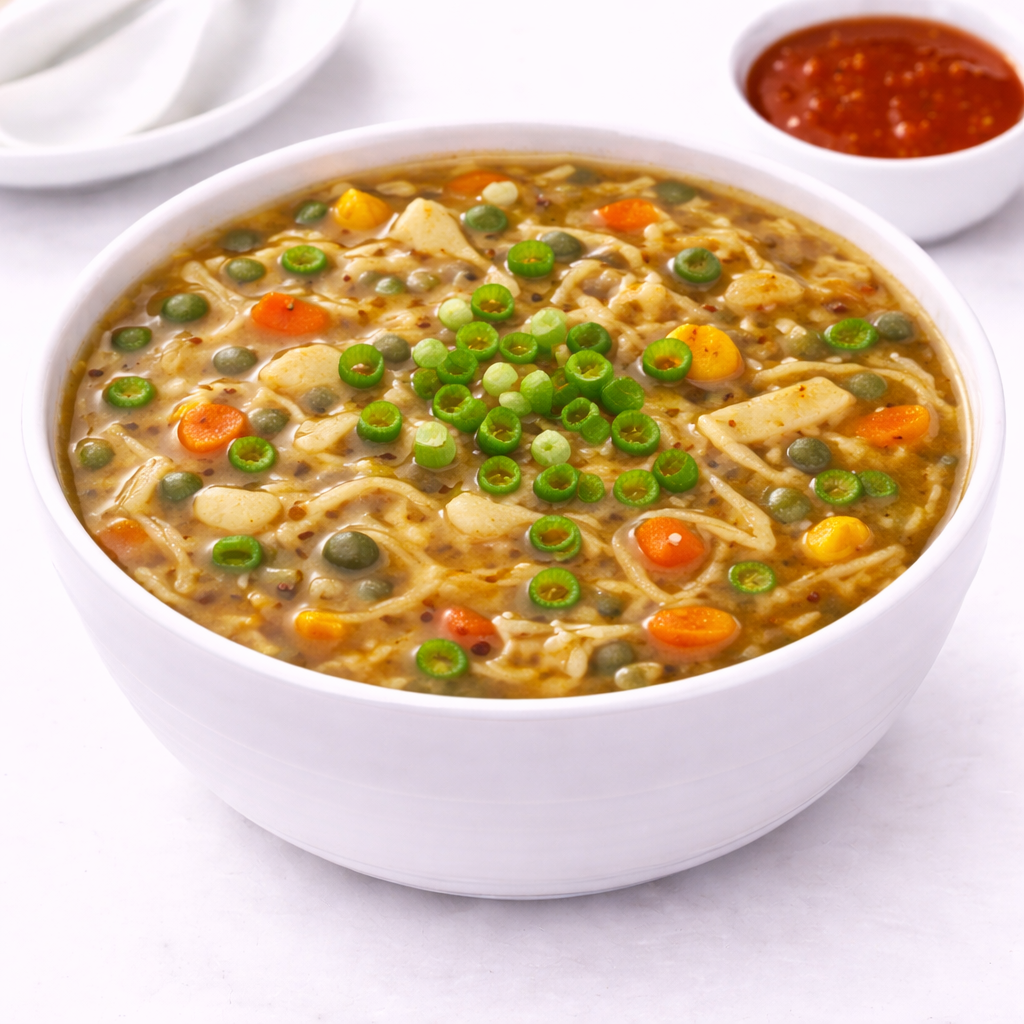 Warm and comforting chicken soup with tender chicken, carrots, and herbs in a flavourful broth.