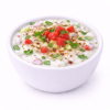 Yoghurt mixed with chopped cucumber, onion, and spices for a cool, refreshing raitha.