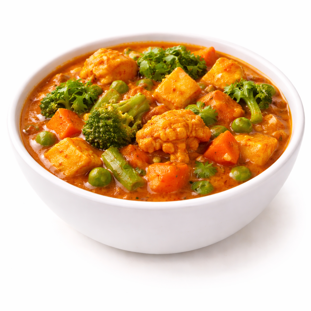 Mixed vegetables cooked in a rich onion and tomato gravy with aromatic Indian spices.