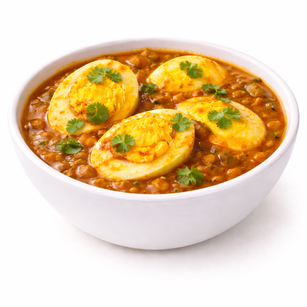 Boiled eggs simmered in a fragrant onion, tomato, coconut-based gravy with aromatic spices.