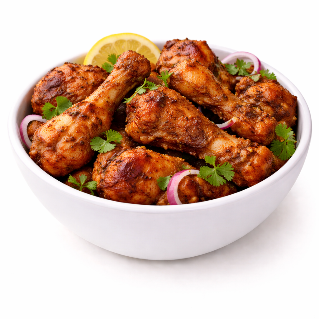 Chicken fry cooked with Indian aromatic spices, crispy on the outside and juicy inside.