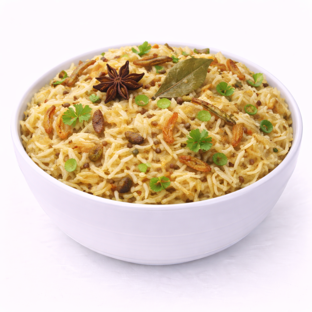 Fragrant basmati rice cooked with mild spices, herbs, and a touch of ghee.