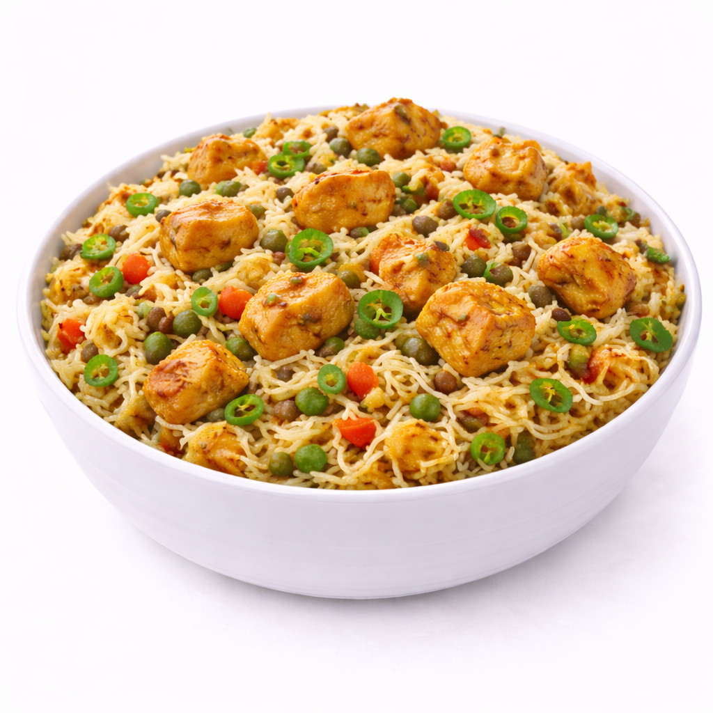 Fragrant basmati rice cooked with paneer and aromatic spices for a rich, flavourful biryani.