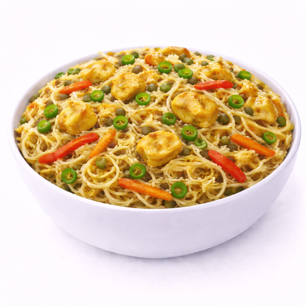 Fragrant basmati rice layered with mixed vegetables and aromatic Indian spices, cooked to perfection.