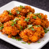 Crispy dry cauliflower florets tossed in spicy South Indian 65 masala.