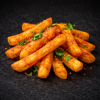 Crispy fries tossed in spicy masala sauce with herbs and chili.