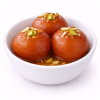 Fried milk solids dough balls soaked in sugar syrup and served warm.