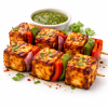 Grilled paneer cubes marinated in Indian aromatic spices with bell peppers & onions served as delicious, smoky kebabs.